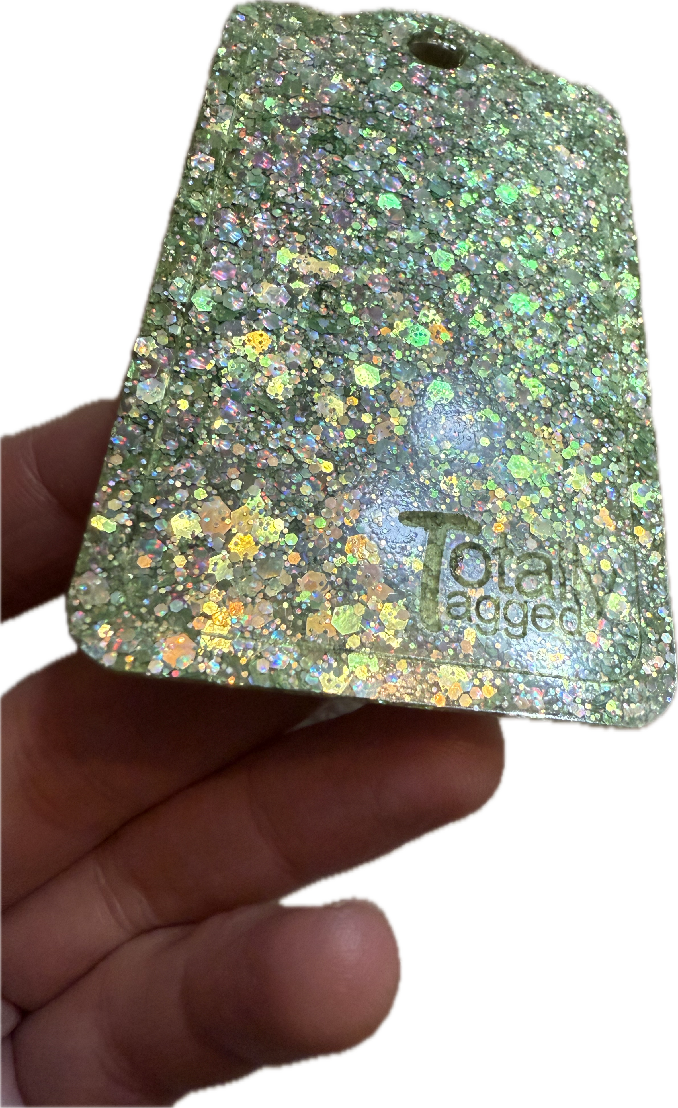 - Included: 2" × 3.5" resin tag + 1 clear loop (pen not included).
